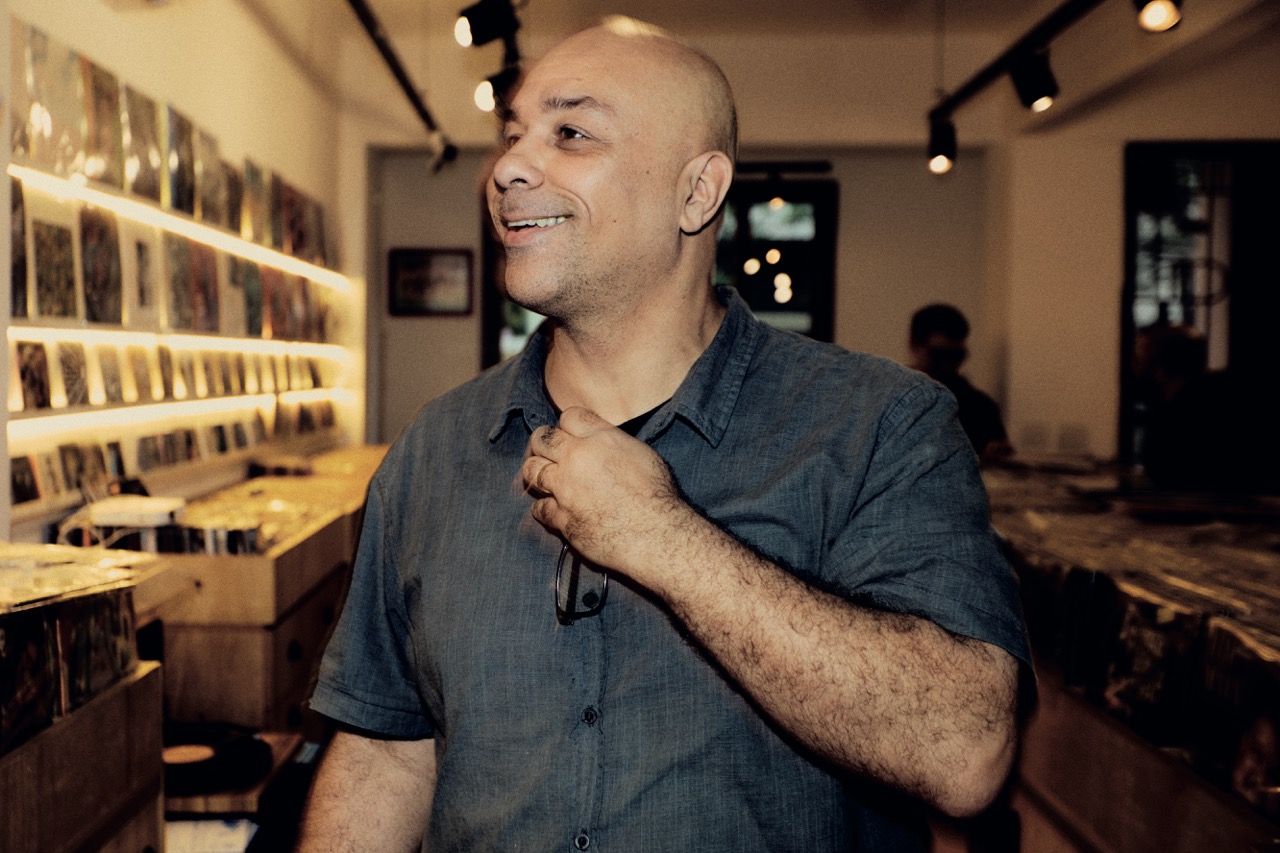 Estou em êxtase, mas disfarço. Adolescente do século passado, frequentador de lojas (já extintas) como Modern Sound e Disco do Dia, em Copacabana, vivi nesses espaços muitas descobertas, encontros e confraternizações. Durante um tempo, sonhava trabalhar numa loja de discos para ficar o dia inteiro ouvindo música, falando de música e indicando músicas legais para as pessoas. Virar jornalista de música supriu algumas boas partes desse ingênuo desejo. Mas agora estava prestes a viver, por algumas horas, o sonho nerd original. Reparo na decoração discreta e quase minimalista da loja, que até 2023 ocupava outro endereço, menos favorável, num prédio comercial no centro da cidade, antes fervilhante e agora esvaziado no pós-Covid. Numa das paredes, está o pôster do documentário “O fabuloso Fittipaldi”, de 1973, dirigido por Roberto Farias, com trilha-sonora assinada por Marcos Valle e pelo então iniciante grupo Azymuth, que se tornaria um gigante da música instrumental brasileira. Em outra parede, estão penduradas preciosidades como “Nashville skyline”, de Bob Dylan, “The power and the glory”, do Gentle Giant (na versão inglesa, com a capa em formato de uma carta de baralho) e “Suitable for framing”, um bootleg de Paul McCartney.