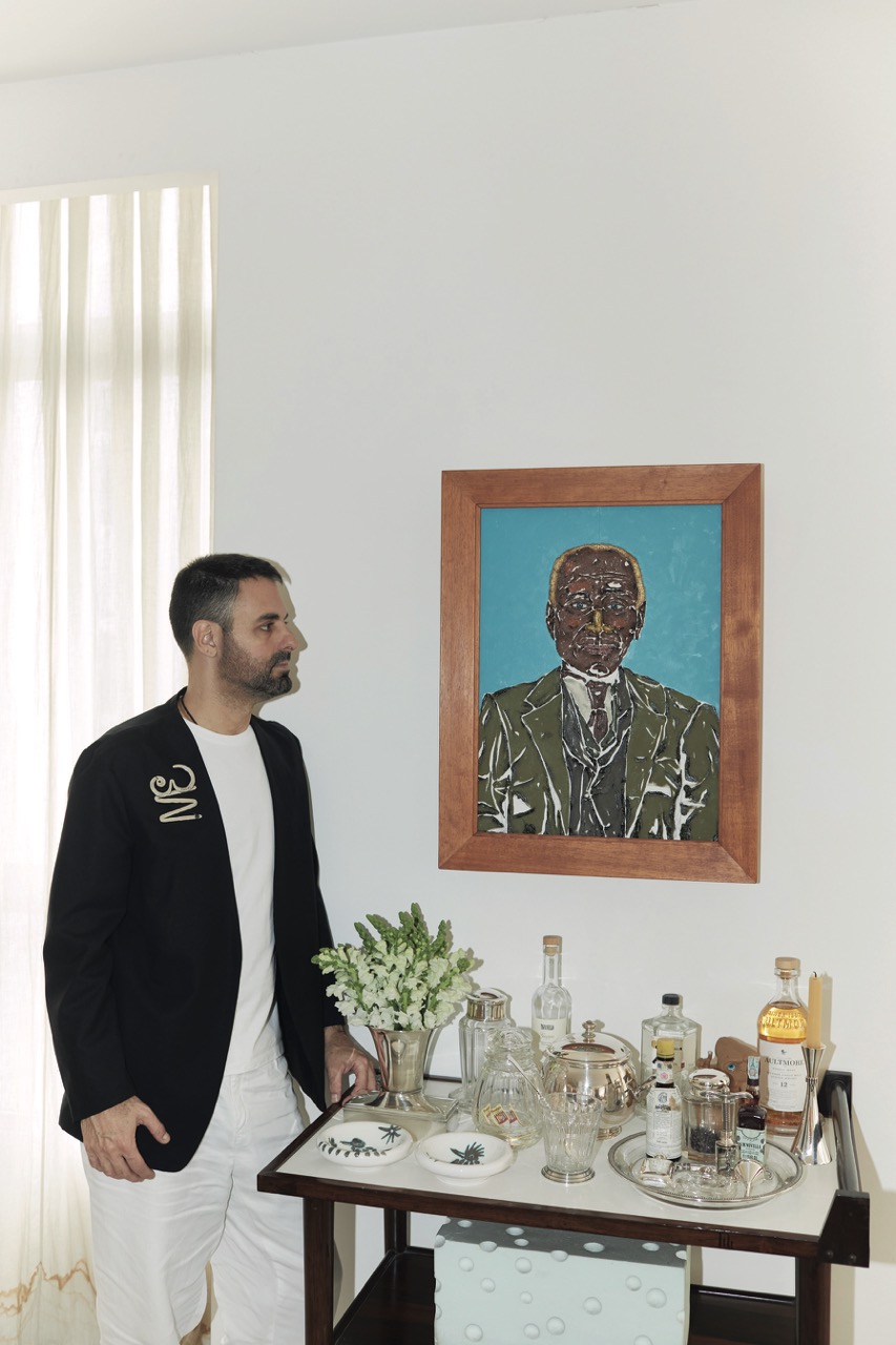 “Aqui é um autorretrato da Lygia Pape, da década de 1970. Eu demorei para comprar uma Lygia Pape, mas quando eu vi isso me apaixonei. Eu amo como ela se sintetiza: uma mecha de cabelo e uma geometria onde se lê EU.” Assim como esta, cada peça tem sua trajetória: de onde veio, a quem pertencia, por que está ali. De minúsculos objetos até o outro apartamento que mantém em Copacabana, no Rio, que um dia foi de Jorge Amado, parece imperar a máxima que ele usa para falar das joias: “Cada balangadã tem uma simbologia, tem uma história.”