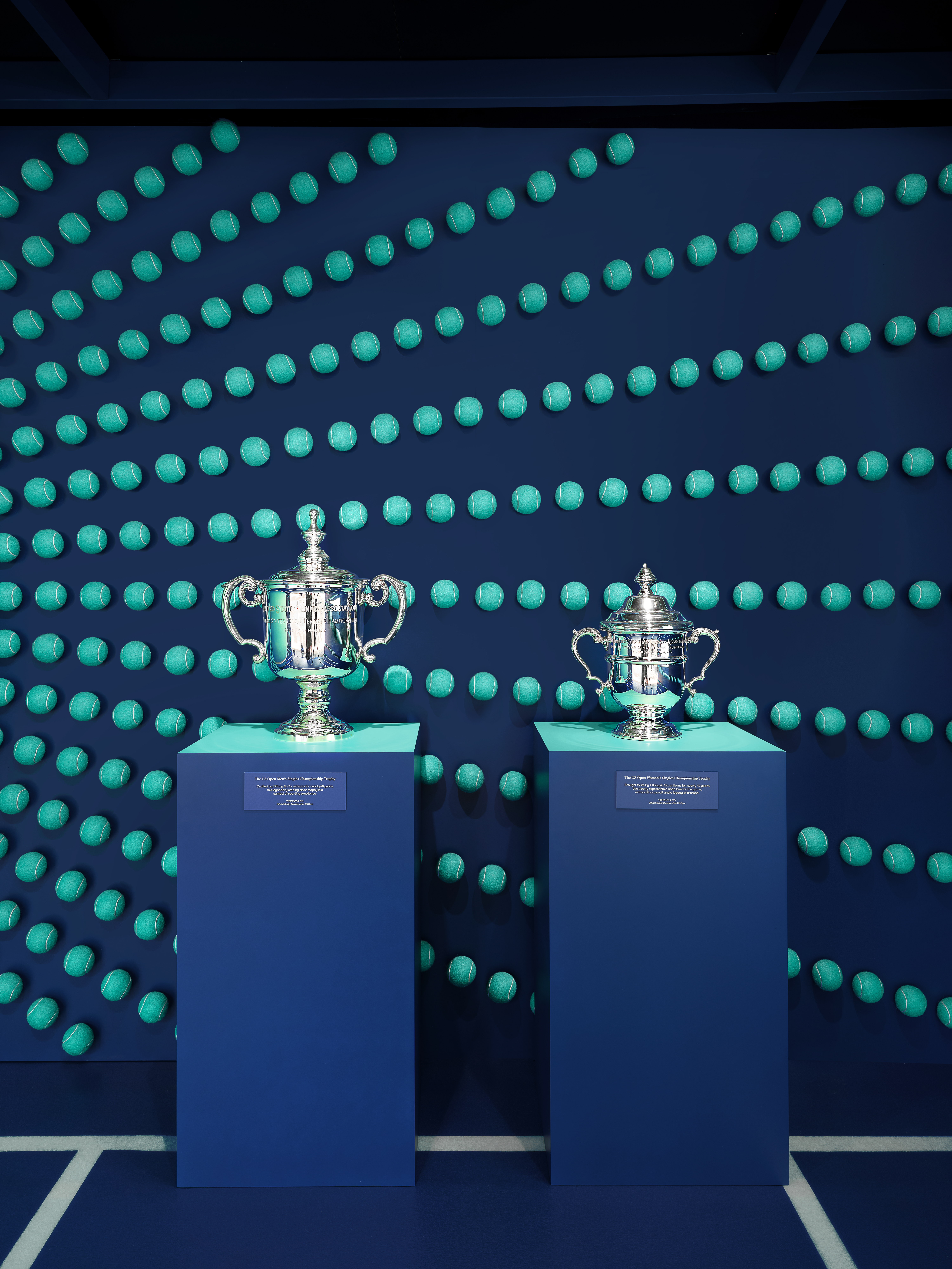 Localizado na Fountain Plaza, o pop-up da Tiffany & Co. no US Open 2025 chama a atenção dos visitantes com uma bola de tênis em tamanho gigante na icônica cor Tiffany Blue®, posicionada em um dos cantos da experiência. No interior, os visitantes podem admirar os troféus de campeões de simples masculino e feminino, produzidos anualmente pelos mestres ourives da Tiffany no ateliê de Holloware da marca em Cumberland, Rhode Island — uma tradição que já dura quase 40 anos.