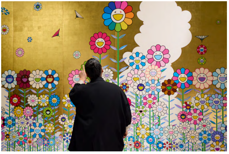 A estética minimalista da Dom Pérignon ganha uma nova roupagem com o lúdico das flores sorridentes de Murakami.